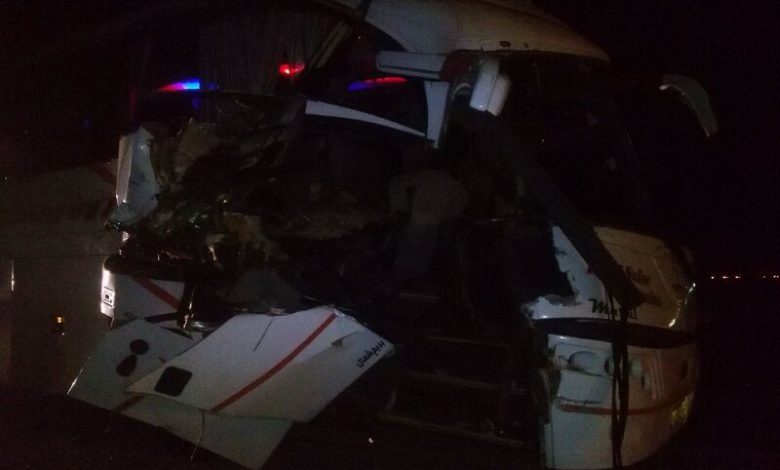 برخورد اتوبوس مسافربری با کامیون شانزده نفر را راهی بیمارستان کرد.