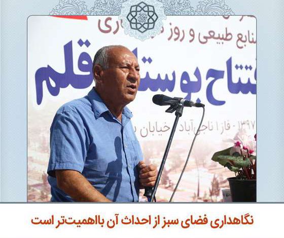 فعال محیط زیست در آیین افتتاح بوستان قلم: