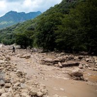 جاری شدن سیلاب در روستای مرق کاشان